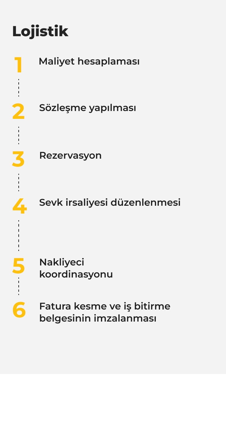 Bu ulaşım türü en zor olanlardan biridir. Net bir yükleme şeması, bir sevkiyat programı, eksiksiz evraklar, ve kargo taşımacılığı organizasyonu geliştirmek önemlidir. Ürünün türüne ve mesafeye bakılmaksızın en iyi rotayı seçeceğiz.
