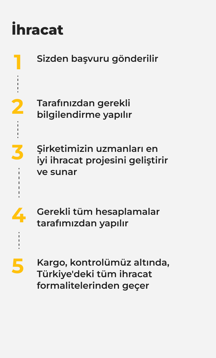 Gönderilecek ürünlere tam gümrük belge paketi profesyonel bir şekilde hazırlanır. Gümrük işlemlerinden en kısa sürede geçmiş bir şekilde tam evrak paketiyle ürünlerinizi alıyorsunuz.